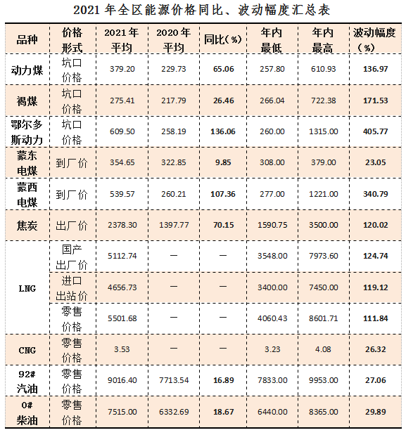 2021年,動力煤價格大起大落,整體價格水平高于上年同期。1-12月,全區(qū)動力煤平均坑口價格為379.20元/噸,同比上漲65.06%?