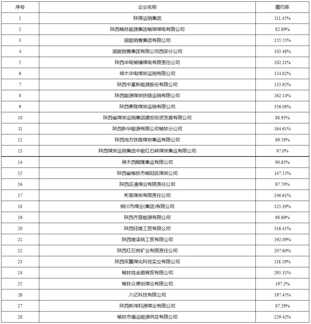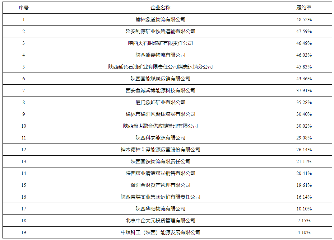 合同兌現(xiàn)較差,履約率低于50%的煤炭供應(yīng)企業(yè)有: