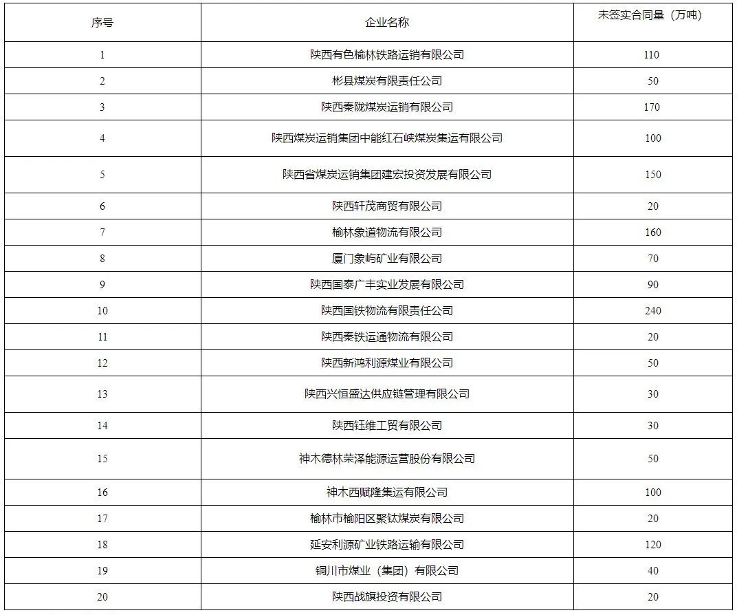 按照國(guó)家發(fā)展改革委辦公廳《關(guān)于做好2022年煤炭中長(zhǎng)期合同監(jiān)管工作的通知》要求,每筆合同必須有明確的價(jià)格水平或價(jià)格機(jī)制,其中納入國(guó)家重點(diǎn)監(jiān)管確認(rèn)鐵路運(yùn)力的合同中未按照價(jià)格機(jī)制簽實(shí)的企業(yè)如下: