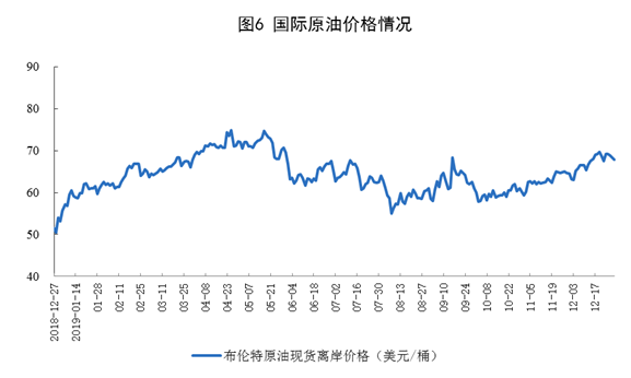 原油價(jià)格持續(xù)上揚(yáng)。12月31日,布倫特原油現(xiàn)貨離岸價(jià)格為67.7美元/桶,比11月29日提高3.3美元。