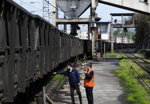 2020年3月5日,在四川省達(dá)州市達(dá)州火車(chē)站,工作人員在編組“達(dá)州直達(dá)武昌10小時(shí)精煤專(zhuān)列”。