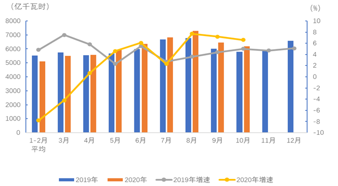 1-10月,全社會用電量同比增長,第三產(chǎn)業(yè)用電增速由負轉(zhuǎn)正;發(fā)電量同比增長,其中水電當月發(fā)電量增長較快;水電、核電和風電設備利用小時同比增加,火電利用小時同比降低;全國跨區(qū)送出電量保持較快增長;除核電外,其他發(fā)電類型基建新增裝機均同比增加;電源完成投資同比增長,其中可再生能源發(fā)電完成投資增長較快。一、全社會用電情況1-10月,全國全社會用電量60306億千瓦…