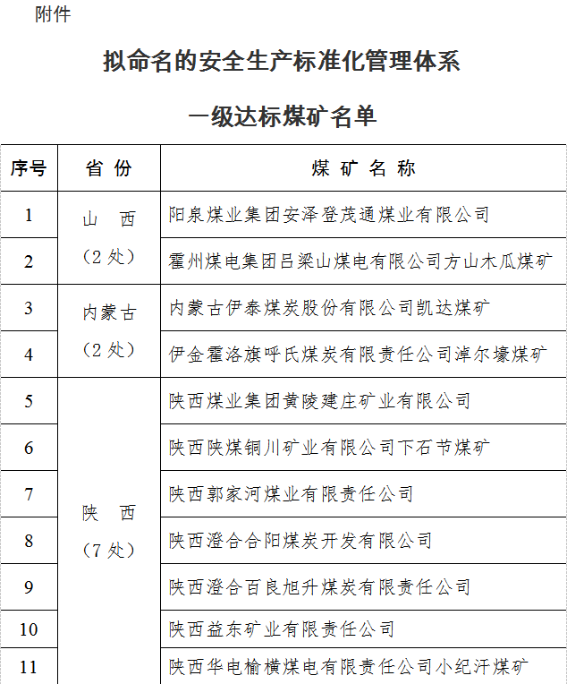 附件:擬命名的安全生產(chǎn)標(biāo)準(zhǔn)化管理體系一級(jí)達(dá)標(biāo)煤礦名單