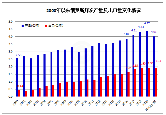 2020年,俄羅斯煤炭出口與上年基本持平。主要是7月-12月強(qiáng)勁的煤炭出口扯平了上半年的出口疲弱,遠(yuǎn)東和南部港口增加的煤炭出口對(duì)沖了西北波羅的海沿岸港口煤炭出口的下滑。據(jù)外媒消息,2020年俄羅斯海運(yùn)煤炭出口1.9億噸,略高于2019年的1.89億噸和2018年的1.822億噸。