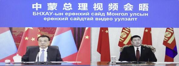 10月12日,國(guó)務(wù)院總理李克強(qiáng)在北京中南海紫光閣同蒙古國(guó)總理奧云額爾登舉行視頻會(huì)晤。