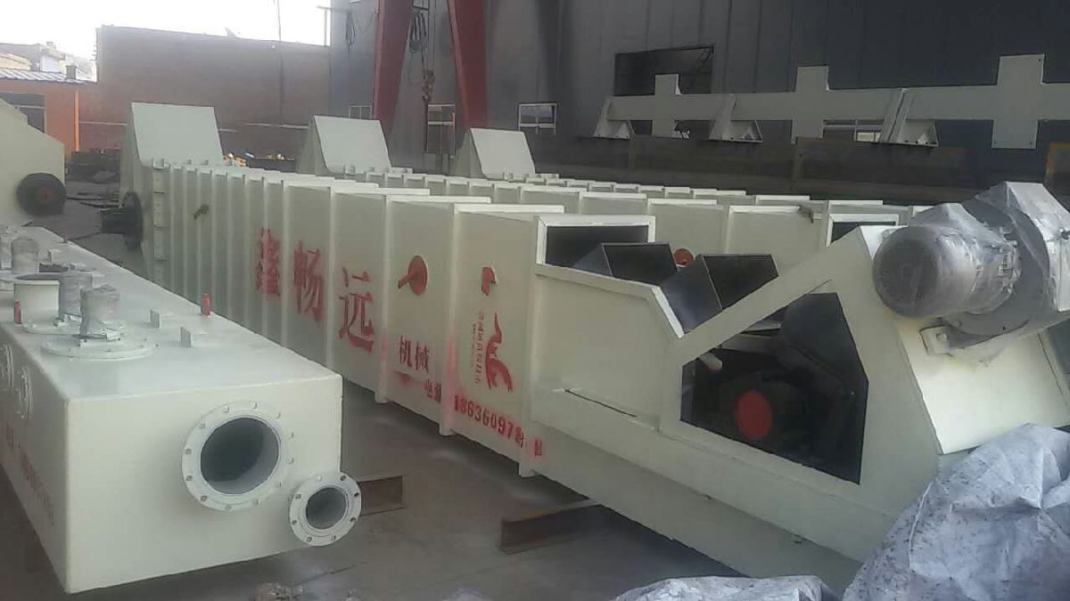 工作原理: 由傳動裝置提供動力給鏈輪軸,通過連接在鏈輪軸上頭輪的轉(zhuǎn)動,帶動由兩根鏈條和料斗組成的斗鏈。料斗由鋼板制成,其上交錯排列著脫水用的長孔,在經(jīng)過存有物料的尾部時,料斗挖取物料,在星輪帶動斗鏈無極轉(zhuǎn)動的過程中,完成物料的脫水、運輸及卸料。